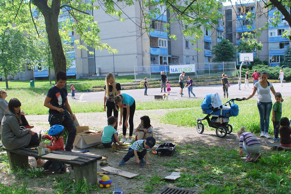 Želimo si namreč, da se otroci spet vrnejo na otroška igrišča. Da ustvarjajo, se lovijo, delajo ‘lumparije’ (ok, čim manj, ampak tudi to je del otroštva), se družijo … in ne čepijo doma za zasloni. Morda preveč vpisujemo otroke na najrazličnejše aktivnosti in jim privoščimo premalo spontane igre na prostem. Če se le spomnim, kako zelo smo mi kot otroci hlepeli po takšni igri! Prav zato podpiram projekt, ki teži k temu, da se otroci preprosto – igrajo. Tako povsem spontano razvijajo tiste kompetence in moči, ki jih trenutno potrebujejo in za katere se odločajo povsem sami. Otrokom avtorji projekta sporočajo: “Pojdite  na igrišče, igrajte se po svoje, prepirajte se po svoje, probleme, ki vam pridejo na pot, rešujte po svoje, doživite svoje otroštvo aktivno in na vaš način.” Vse to je potrebno za zdrav vsestranski razvoj otroka, poleg tega se otrok tu intenzivno uči lastnega nadzora nad svojim življenjem. Vesela sem, da so ustanovitelji doma prav v našem naselju, da se od tu dogaja in širi. Po Ljubljani, Kranju, Novem mestu ….